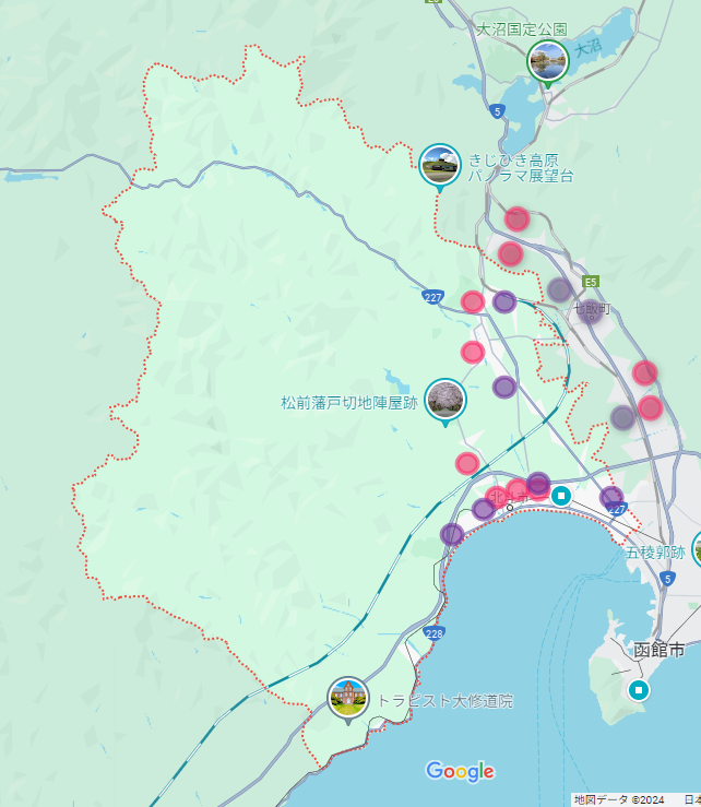 北斗市内の蜂の巣駆除に伺ってみて、蜂の分布図をざっくり作ってみました。