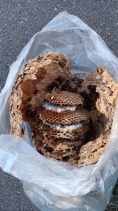 お客様が刺されることもありますので、巣の場所がわかれば、大体の場所をお知らせいただき、屋内でお待ちください。